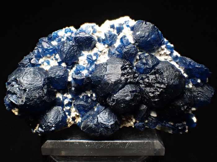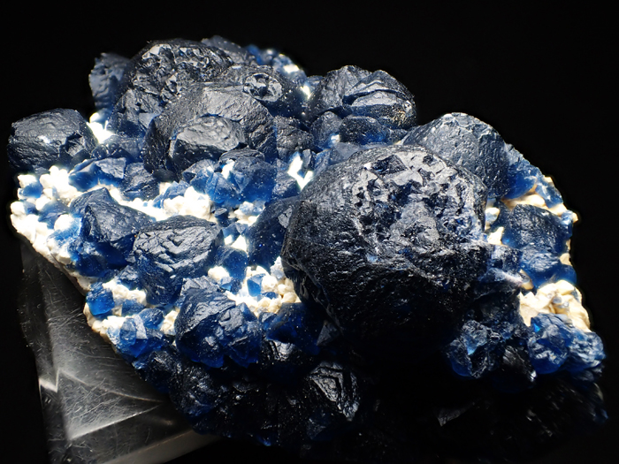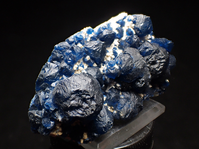 細かなホワイトクォーツのクラスターに、八面体ベースのブルーフローライトが所狭しと降り積もった、内モンゴル産の名標本です。光を通さない程の濃厚なブルーに染まった歪な結晶が、不気味でもあり可愛らしくもあります。
