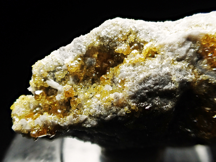 無数のイエローゴールドの結晶が美しく繊細に煌めく、アイルランド産のスファレライトです。主張の強い色彩と素晴らしい透明感に加え、一つ一つの結晶の愛らしい形状が癖になります。