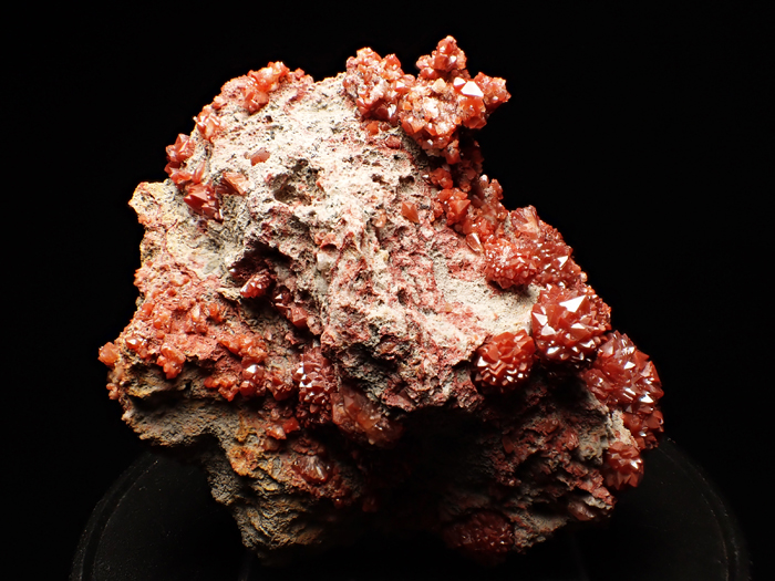 ▲▼ 無骨な母岩から吹き出すかのようにあちこちから赤水晶が生えています。場所によって量や成長に変化があるのも見所です。