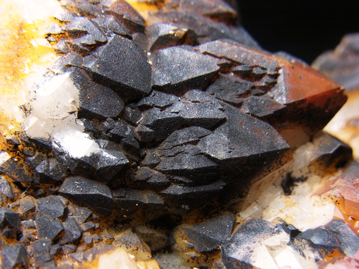 ▲ 黒い塊がなだれ込むようなすごい迫力です。あまり見かけない長めの独特な形の結晶面が多いです。