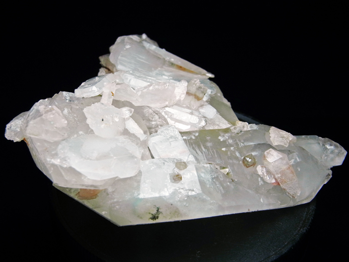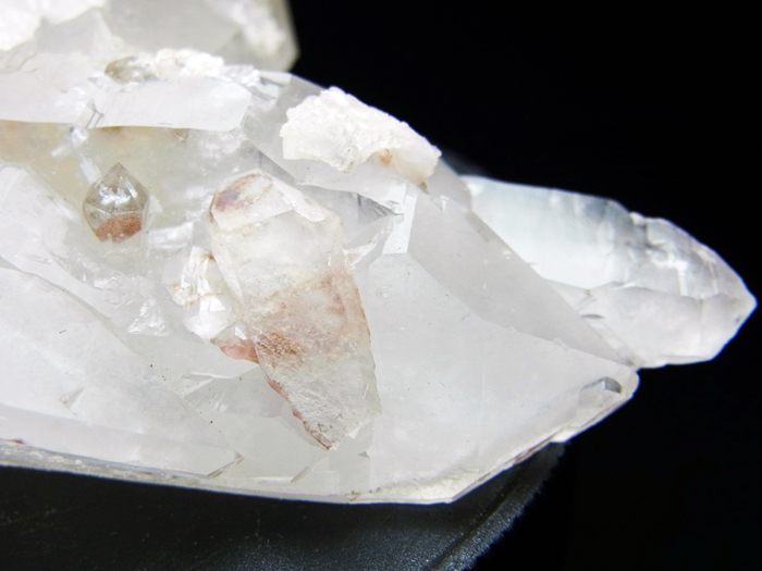 ▲▼ 底面をルーペで注意深く探すと、樹枝状の自然銅やカオリナイトの結晶が水晶内部に内包されている珍しい姿も見られます。