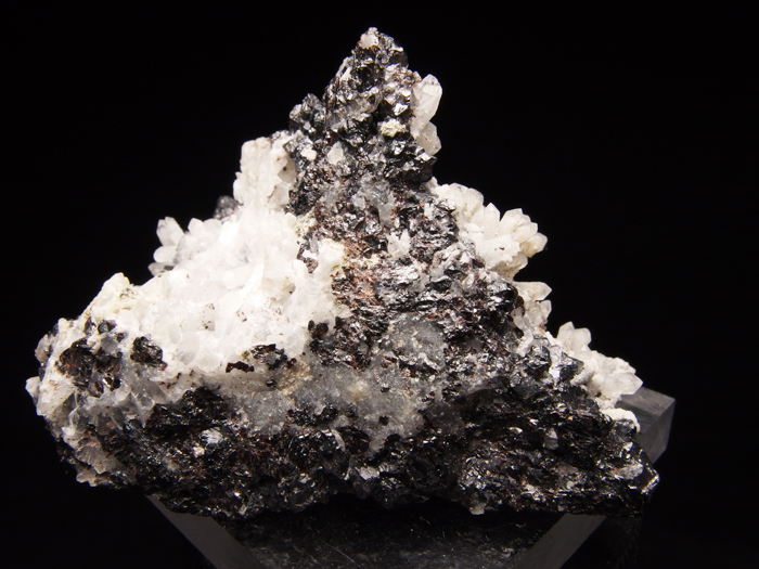 綺麗な山形に積み上がった閃亜鉛鉱の絶壁を、可愛らしい水晶がささやかに彩った岐阜県神岡鉱山産の大変味のある標本です。所々雪の様に微細な水晶が積もっていたり、端正なポイントの中から白いファントムが覗いていたりと何処か和風な魅力が満載です。