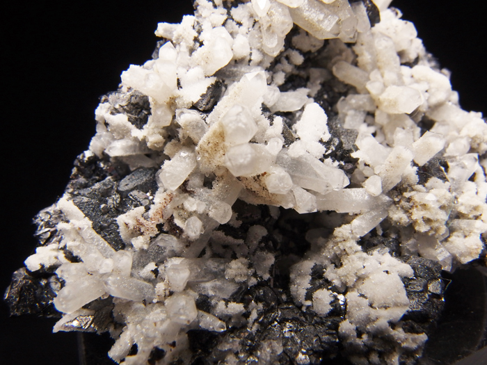 ▲▼ 閃亜鉛鉱の石壁に真っ白な水晶が情緒たっぷりに咲いています。